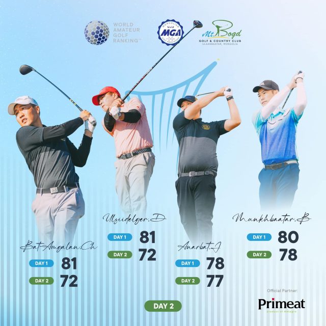 Тэмцээний 2 дах өдөр гайхалтай тоглолтыг үзүүлсэн Хан-Уул гольф клубийн тамирчин Ч.Бат-Амгалан, Соёмбо гольф клубийн тамирчин Д.Өлзийдэлгэр